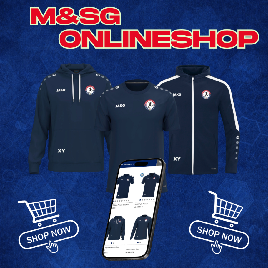 Willkommen im Jako Onlineshop der M&SG Holsen-Bünde-Bruchmühlen. Hier habt ihr die Möglichkeit, Artikel des Team-Outfits nachzubestellen oder Familienmitglieder in M&SG-Farben einzukleiden. Stöbert durch unsere Kollektion und findet das perfekte Outfit für die ganze Familie. Gemeinsam stärker auftreten - im einheitlichen M&SG-Look!
